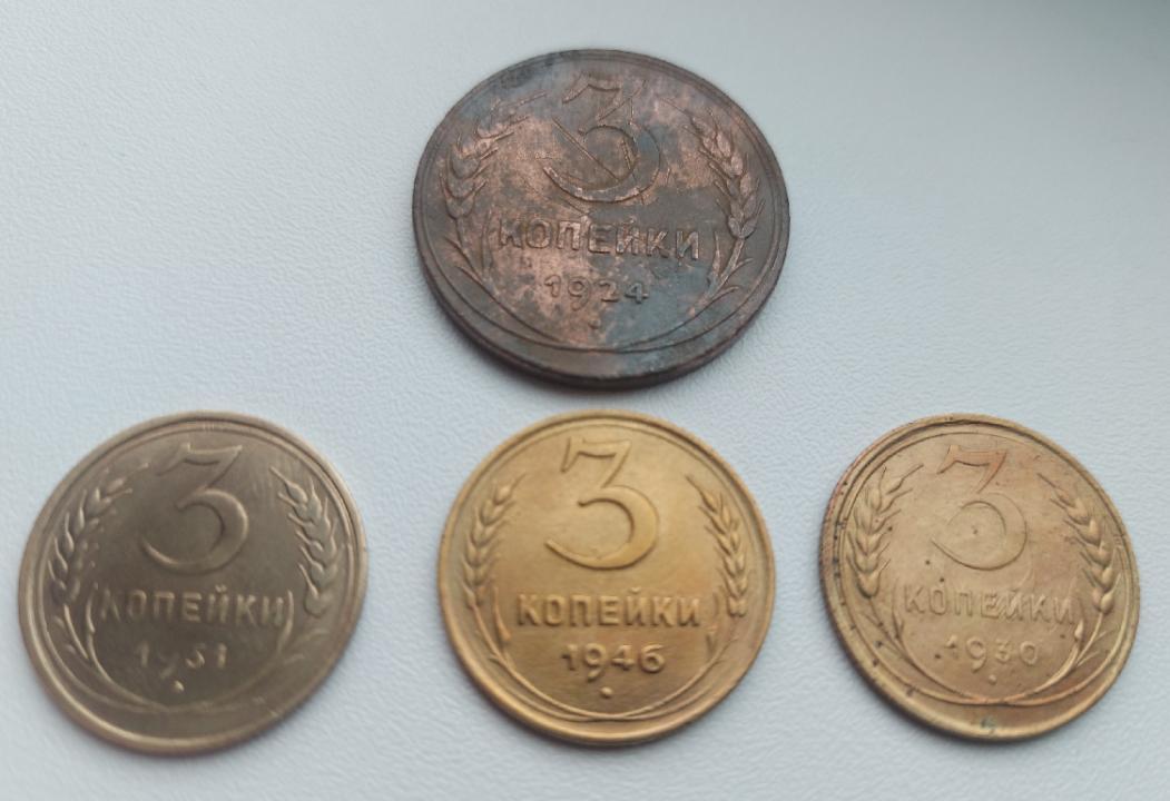 Описание лота: 3 копейки 1924, 1930,1931,1946 гг.