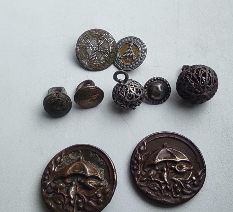 Описание лота: В лоте  Пуговицы гирьки (Филигранные серебро и мельхиор.)и старые винтажные пуговицы