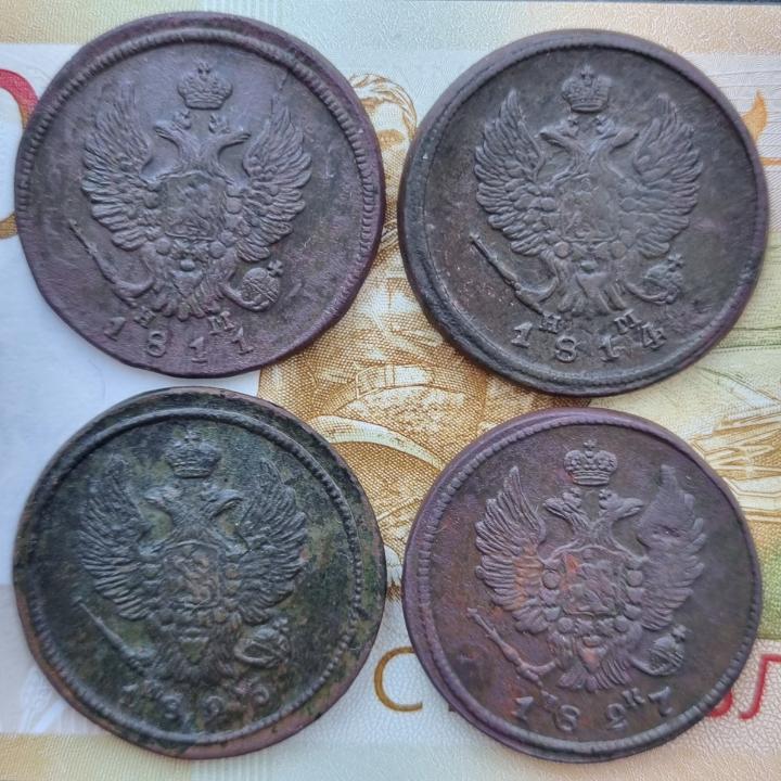 4 медные монеты РИ: 2 копейки 1811,1814,1825,1827гг.Окончание 12.02.2026г.в 22.00 по Москве.