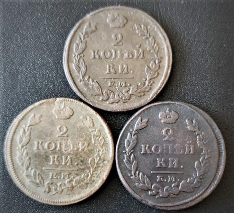 Предлагаю монету 2 копейки 3шт. 1814,1815,1816гг.ем.нм.