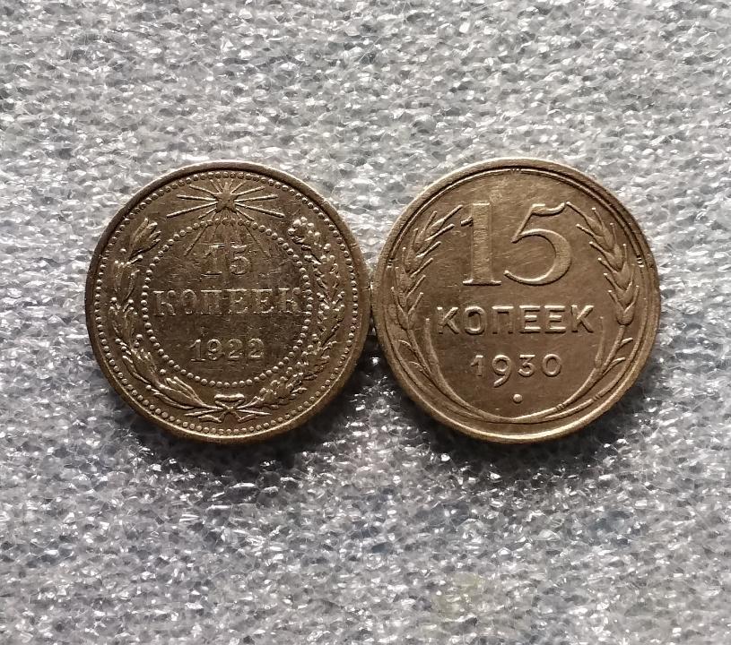 15 копеек 1922+1930гг. 2 монеты. Серебро.