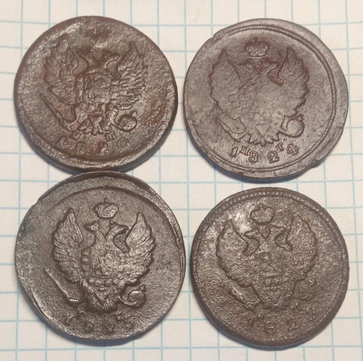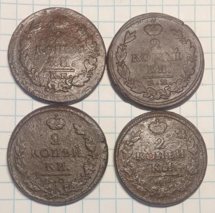 Описание лота: 2 копейки 1820 ем нм, 1824 ем пг, 1825 ем пг, 1829 км ам.