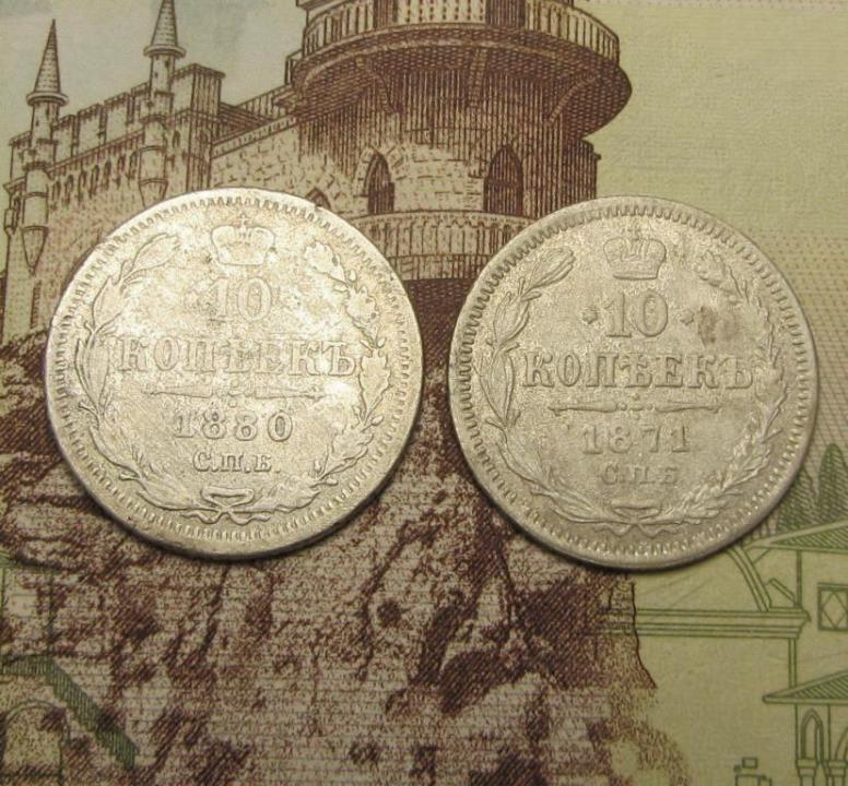10 копеек 1871,1880г. До 19.02.2026 в 22.00 по Мск.