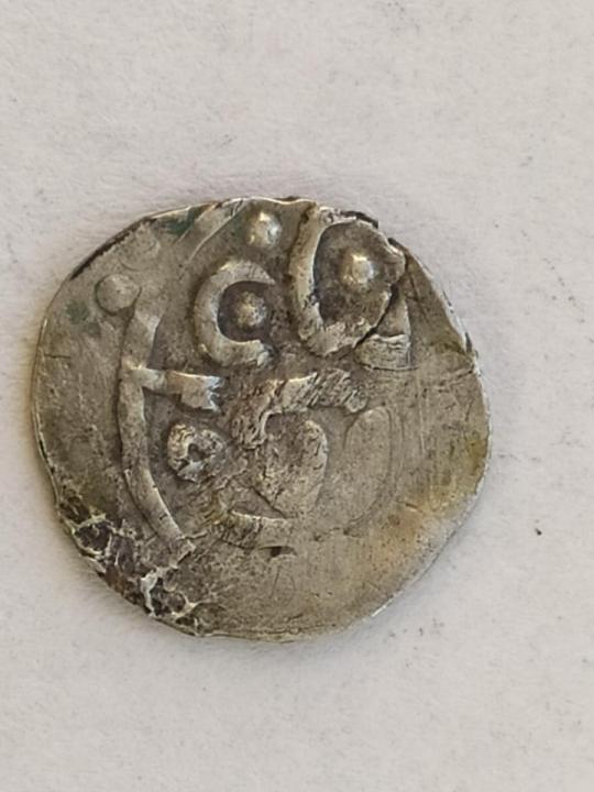 Помогите пожалуйста определить что это за монета. Похоже на серебро. Диаметр - 15,5 мм., толщина - 0,7 мм., вес сказать не могу, кухонные электронные весы не чувствуют совсем. Найдена в долине реки Чернава к юго-востоку от села Ивантеевка Саратовской области. Пересмотрел несколько каталогов по монетам. Ничего похожего не нашёл. Помогите пожалуйста.