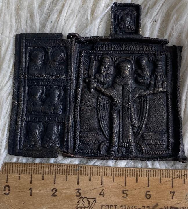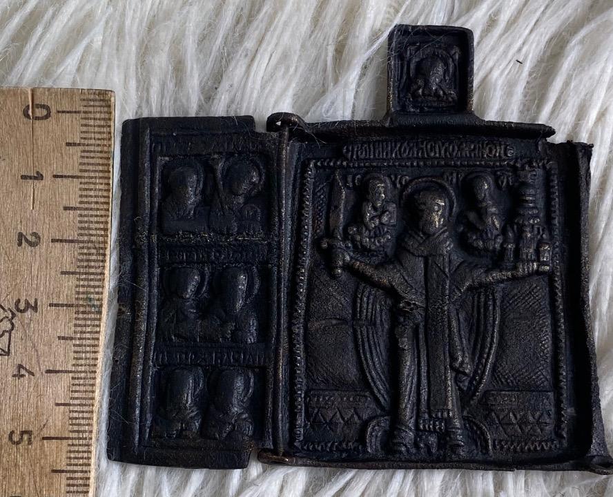 Приветствую! Куплю правую створку складня Никола Можайский. Может у кого то есть. На фото мой без створки, и Целиковый из интернета для примера.