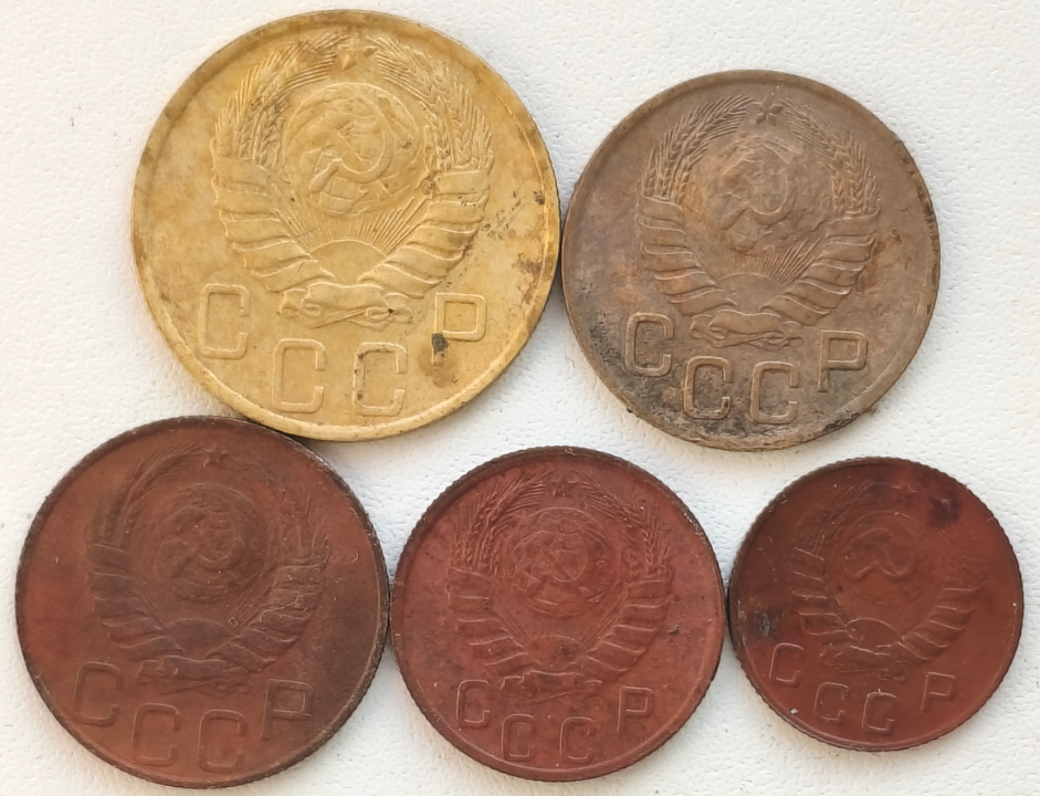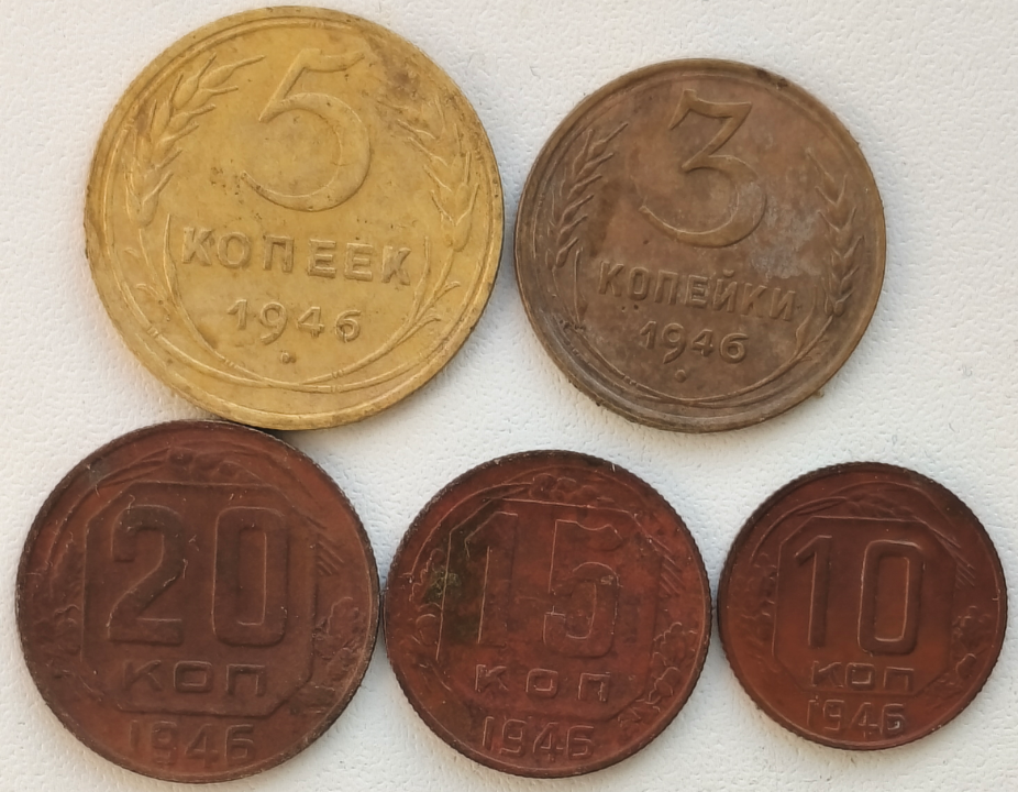 Описание лота  3,5,10,15,20 копеек 1946г