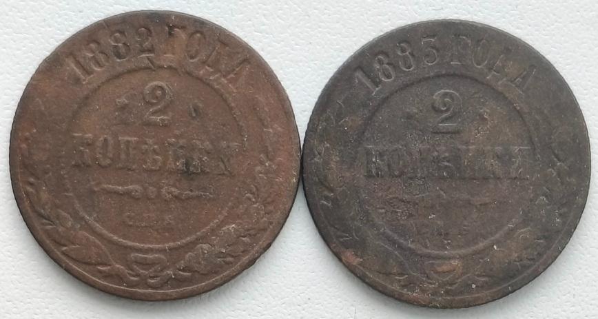 Описание лота  2 копейки 1882 и 1883гг