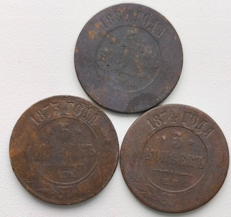 Описание лота  5 копеек 1873,74,80 гг