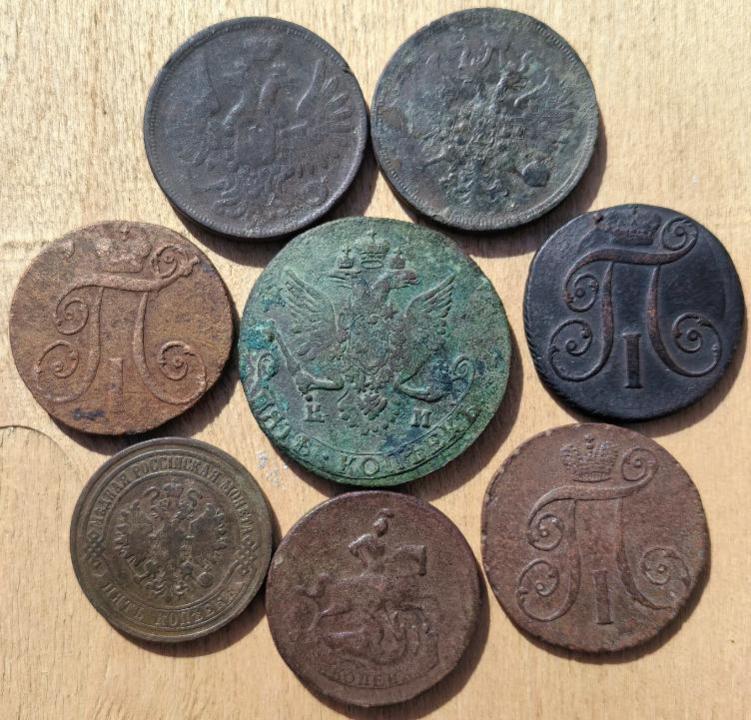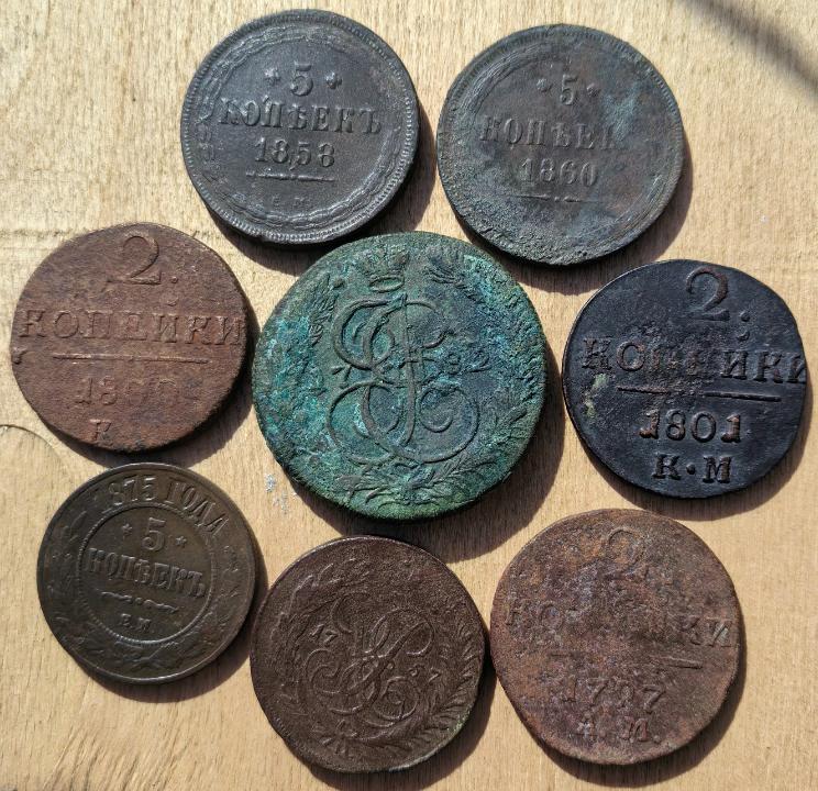 Пять копеек 1782 г. КМ, 2 копейки 1800, 1801 г. КМ и др.