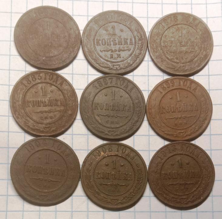 копейка 1869ем, 1870ем, 1878спб, 1883спб, 1897спб,1 899спб, 1904спб, 1908спб, 1913спб. Окончание: 04.04.2026 в 22-00 по МСК.