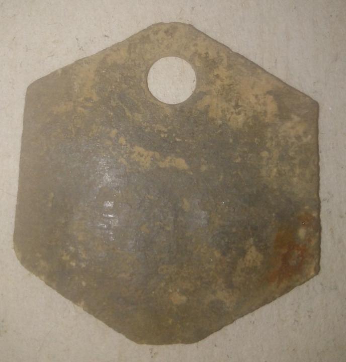 Здравствуйте!Это скорее всего инвентарный жетон..как выше написал Александр а может быть биркой для ключей,гардероба или собачий жетон.Вариантов множество так как на Вашем предмете присутствуют только цифры (без букв)