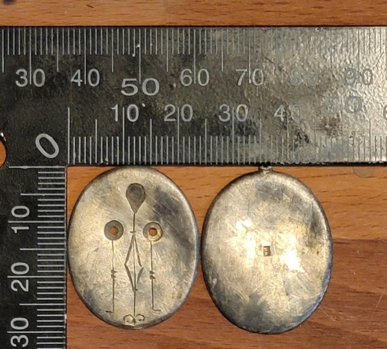 Всем привет! Помогите если не сложно определить что это за находка, и примерный временной период. Была найдена в старом месте известном еще до Ивана Грозного. Состоит из двух половинок, в земле лежала целой, даже не сразу понял что она из 2х половинок. Начал промывать и она разделилась. На задней стороне имеется клеймо.  По виду рисунок старый но клеймо вроде раньше не ставили) Буду благодарен за Ваши ответы!