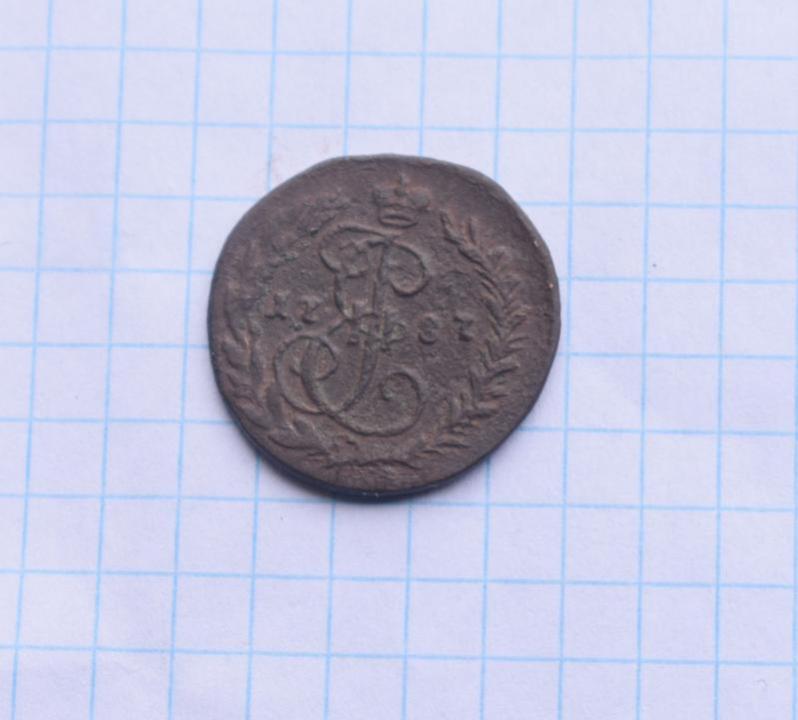 Описание- монета Деньга.Колыванский монетный двор. Медь. Год-1787. Не чищена, только помыта водой. Редкая монета