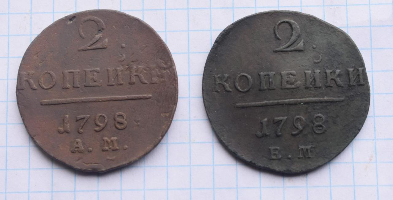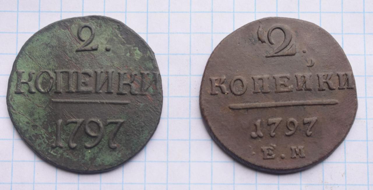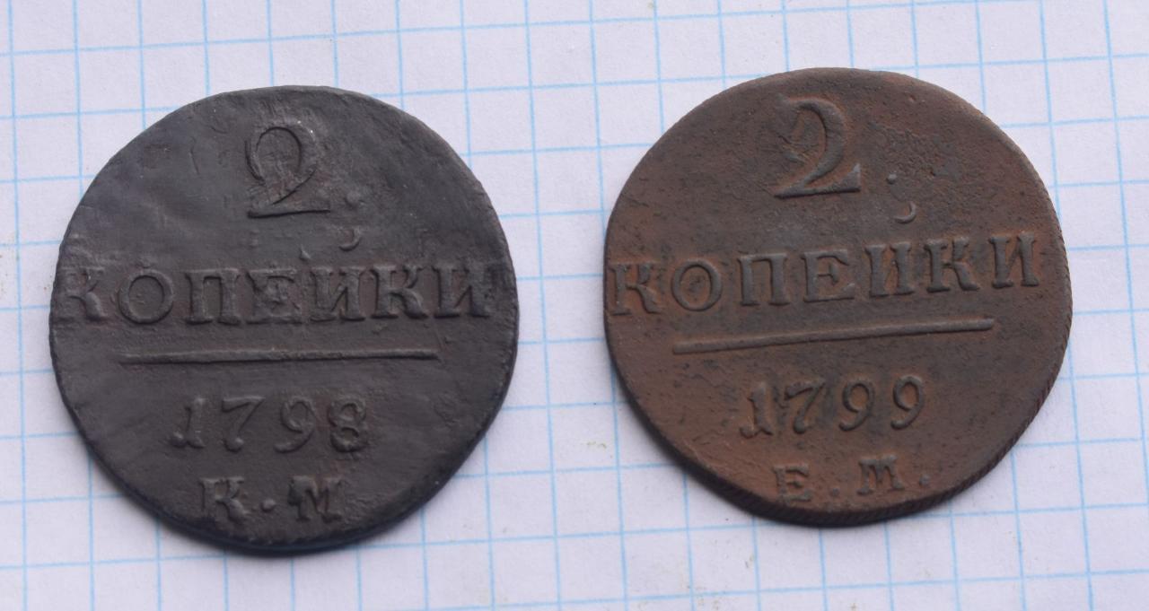 Лот 2-х копеечных монет Павла 1, 13 шт , все разные, продам