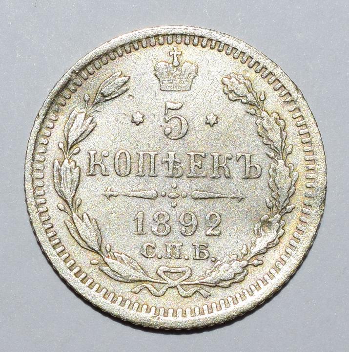 Описание лота: 5 копеек 1892 г. СПБ АГ.