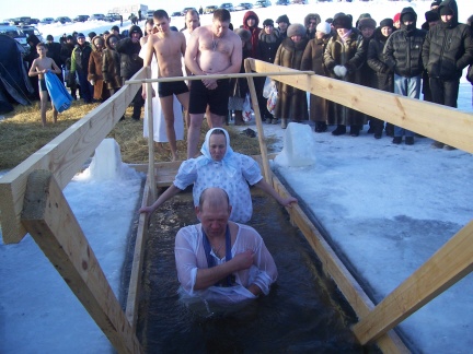 Если всё делать по обряду ничего особенного, я так по моржовому, на снегу разделся и в очередь поплавать.