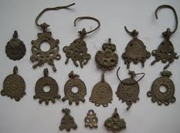 Вот приехал с пятого копа. Много всяких ржавых старых гвоздей, осколков от снарядов и вот эта штучка. Похоже на украшение типа кулон. Размеры 15Х10х1,5 мм, вес около 1 грамма, метал не пойму, вроде медь. Сверху ушко. Может кто видел такое?