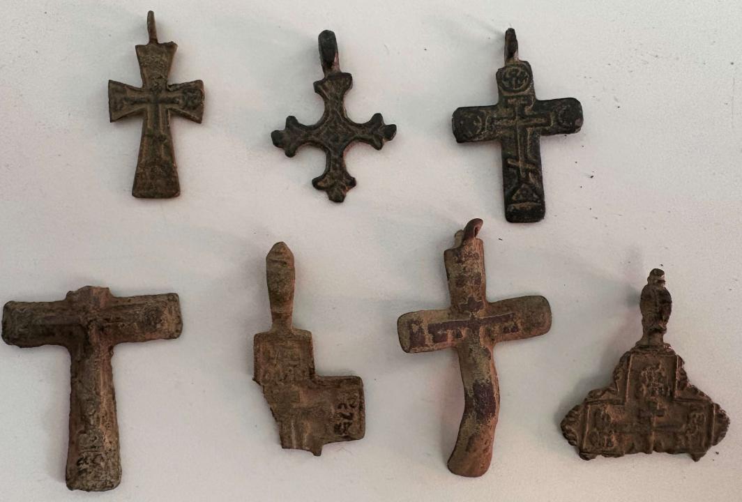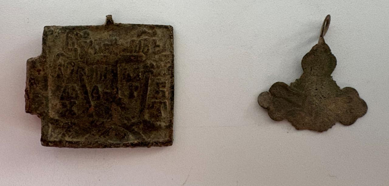 По крестику подскажет кто-нибудь? Такое ощущение, что свинцовый, вес - 12 грамм, размер 32 на 25 мм. Лежит, отмачивается.